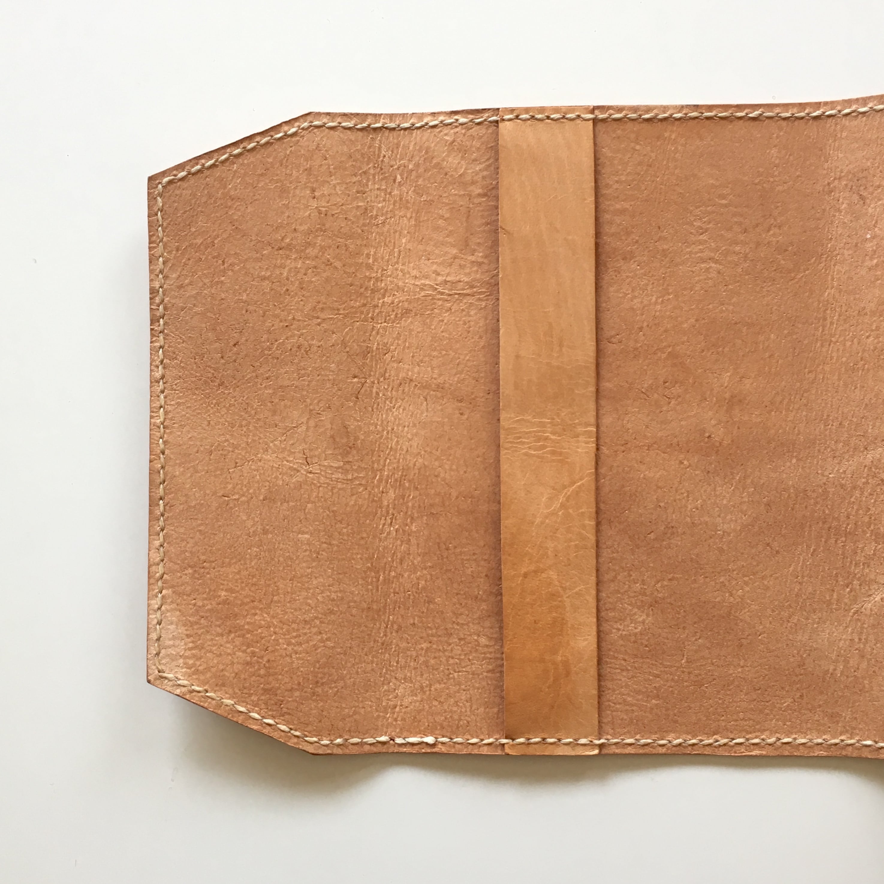 バッファローカーフ(水牛の仔牛革)で一針一針手間と思いを込めながら、ブックカバーを制作いたしました。