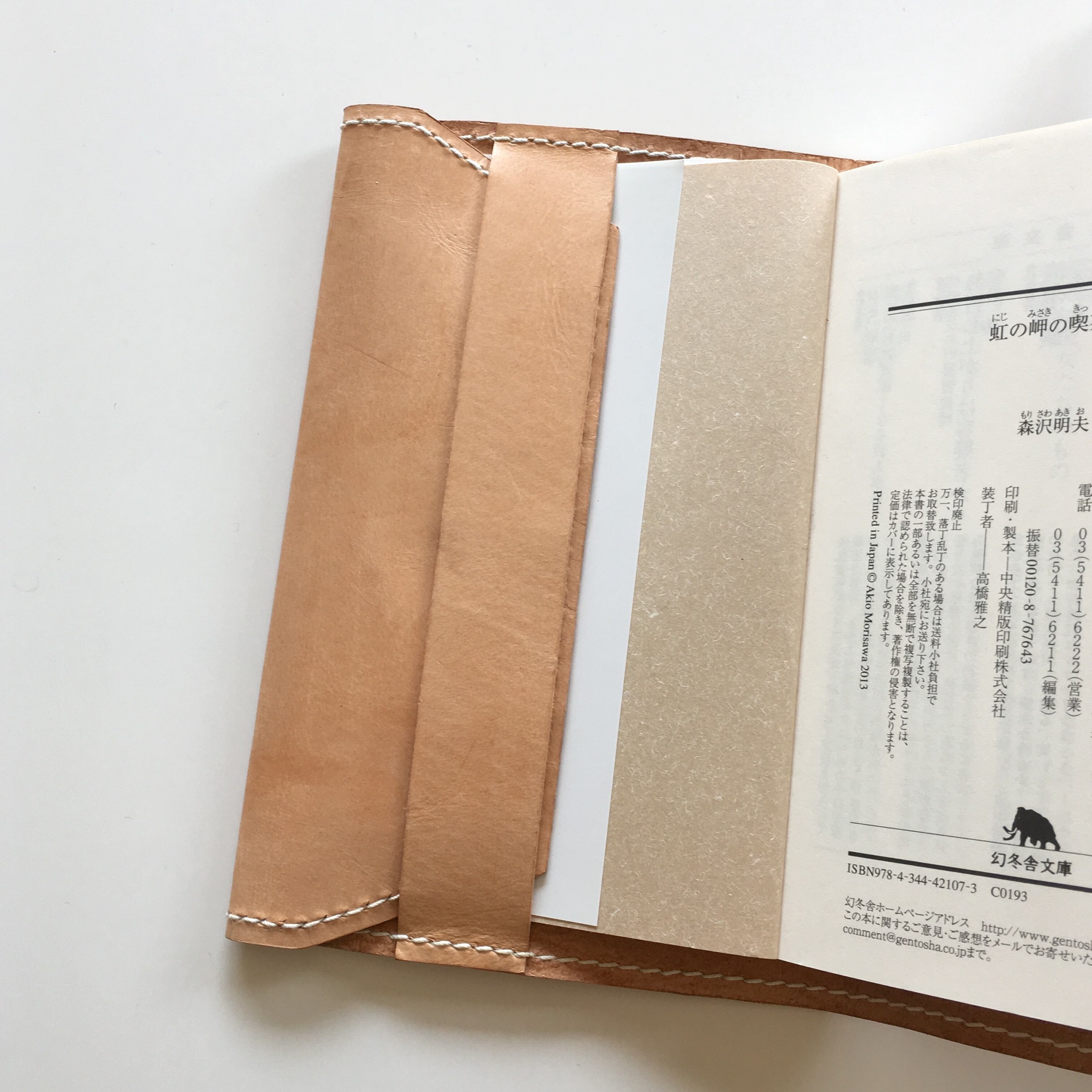 あえて表紙押さえ部分に切りっぱなしの部分を用いて制作してみました。