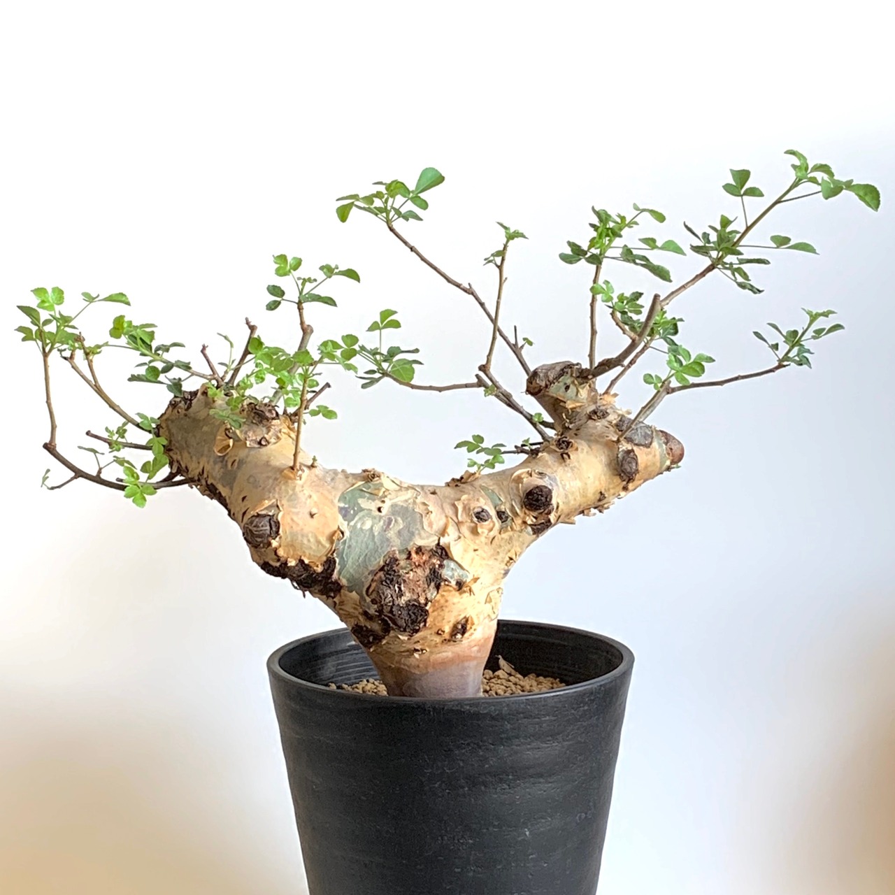 昨年の4月に輸入し、元気に枝を伸ばしたため一度選定しましたが、枝の箇所もどんどん増えています。樹皮も成長によって剥がれ始め、幹もパンパンです。