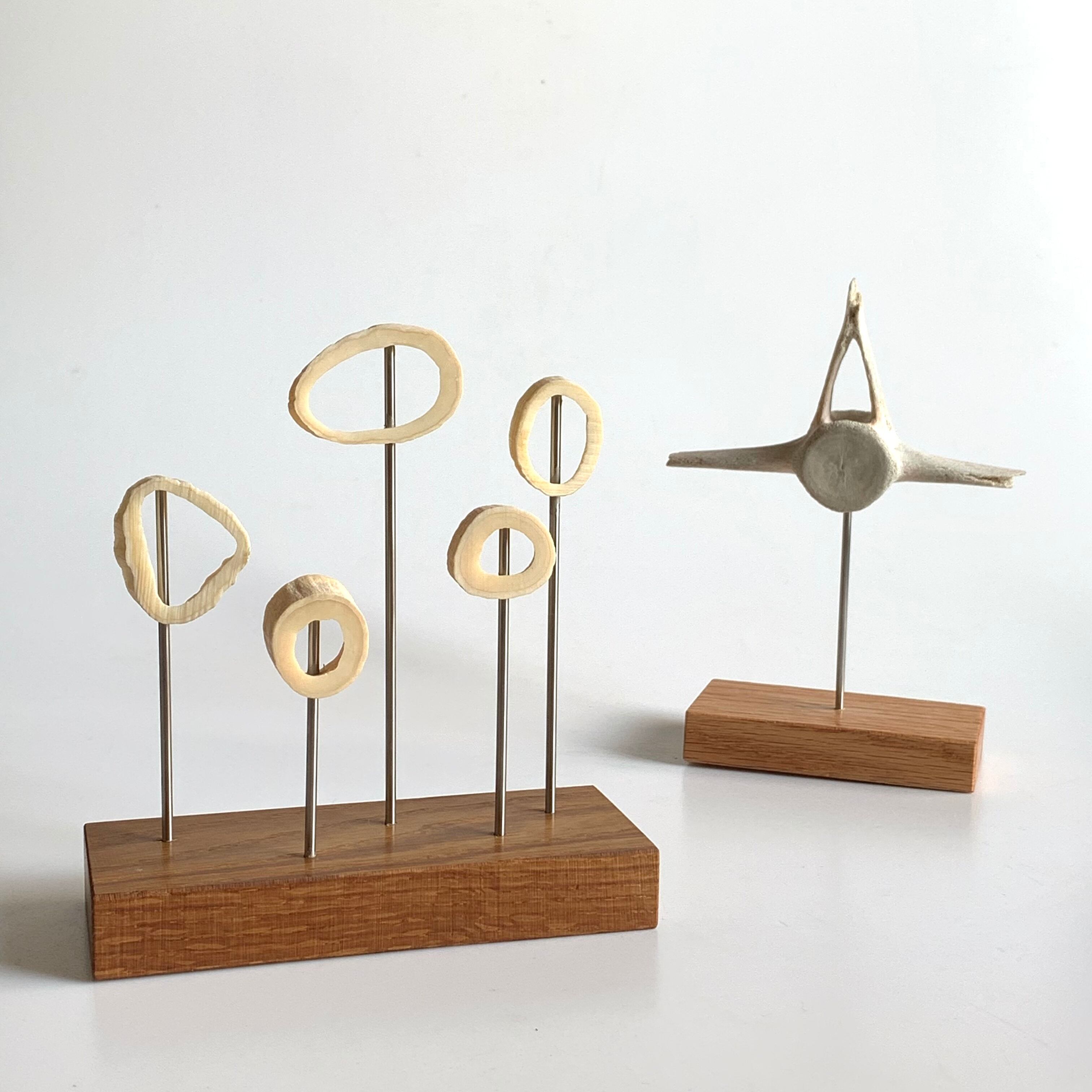 マッコウクジラの歯をスライスしたものでオブジェを作成しました。