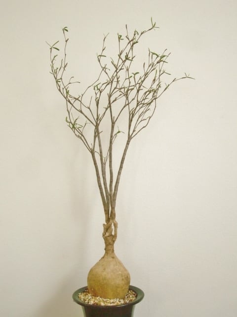 球体の塊根とは対照的に、柔らかな枝と柳のように細い葉を茂らせてくれます。