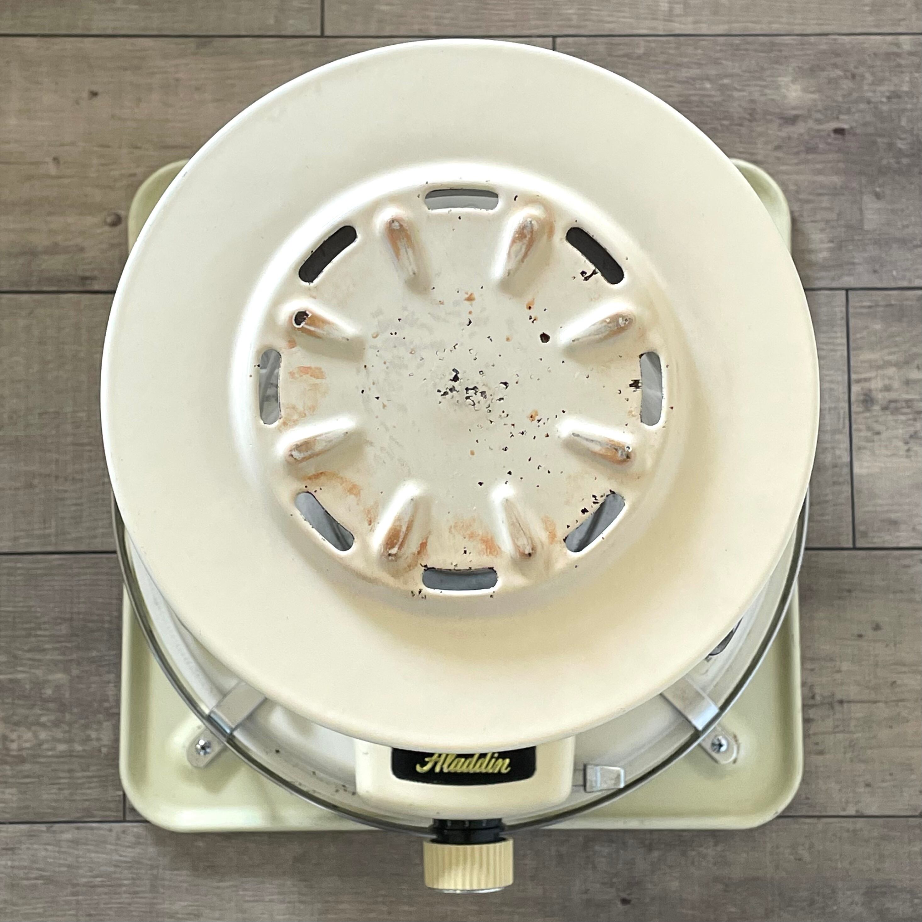 現行モデルの39型と大方は同じデザインなのですが、耐震機カバーのAladdinの文字が浮き上がっていたり、ホーローの厚みなど現行のものよりも贅沢な造りのように感じます。