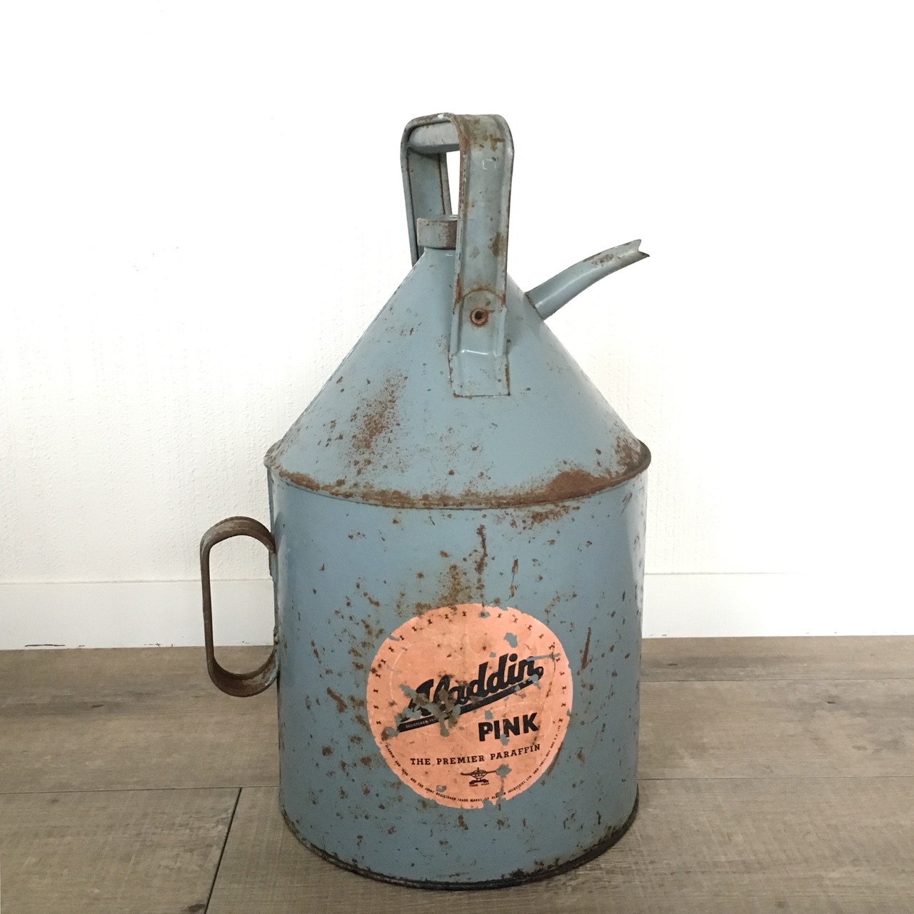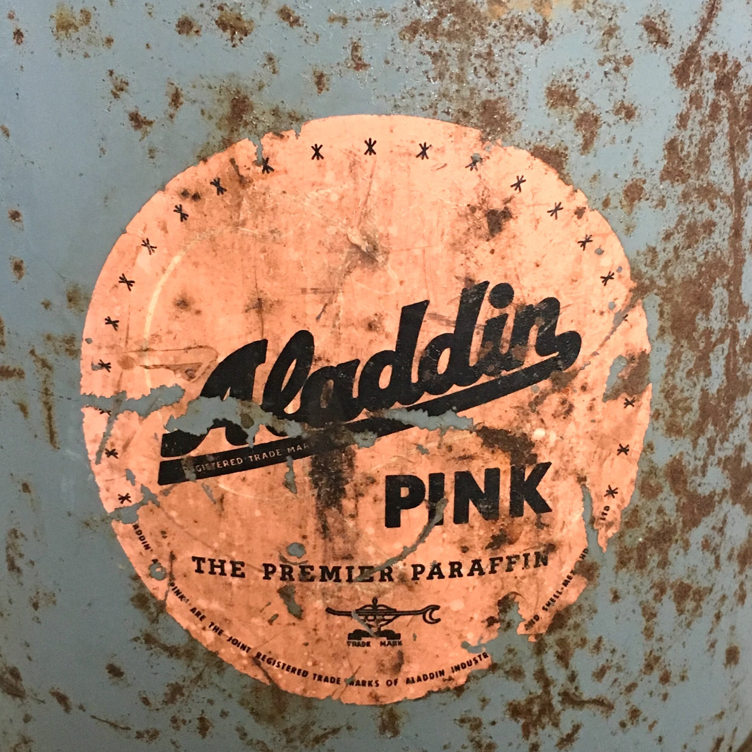 アラジンストーブのための専用燃料として精製されていたAladdin Pink(アラジンピンク)の缶です。